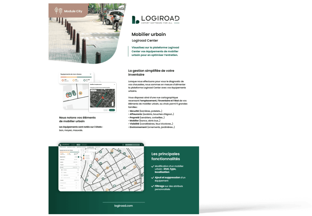 Lorsque nous effectuons pour vous le diagnostic de vos chaussées, nous sommes en mesure d’alimenter la plateforme Logiroad Center avec vos équipements urbains.